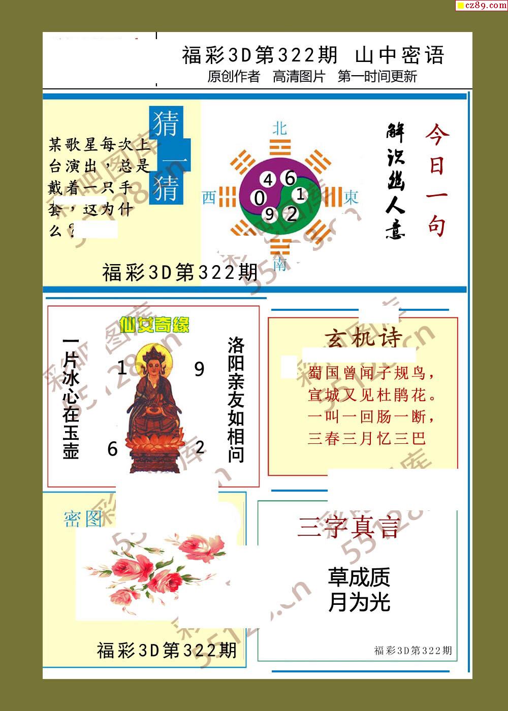 首页 > 福彩3D图谜 > 福彩3d25年322期山中密语彩报
