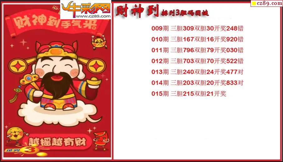 首页 > 排列3图谜 > 2026015期P3财神到胆码图谜