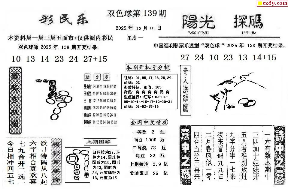 > 双色球2025139期 彩民乐+阳光探码图文版